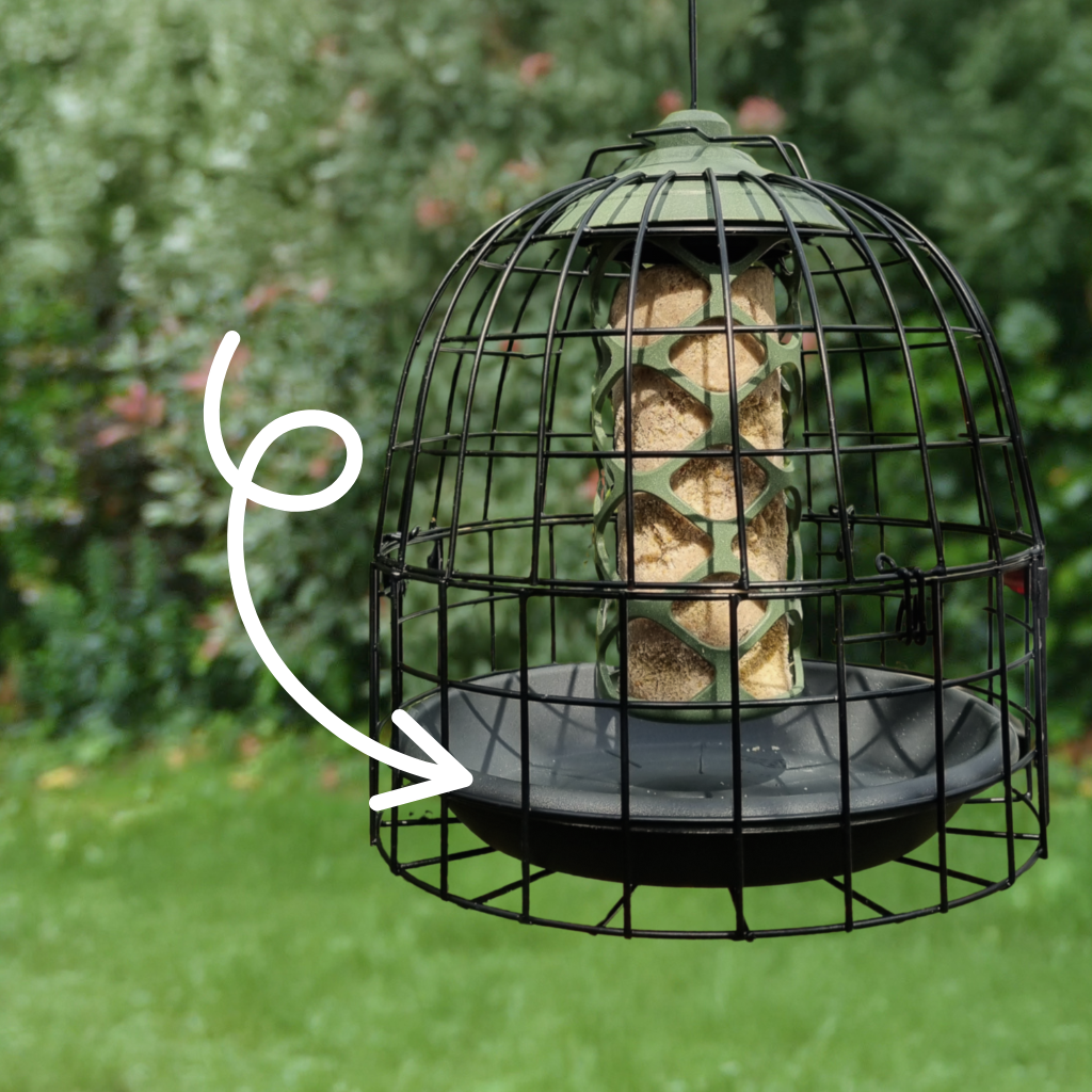 - Si le risque d'avoir des petites miettes vous incombe, nous proposons une soucoupe vendue séparément à installer dans le fond de la grille anti-étourneaux.