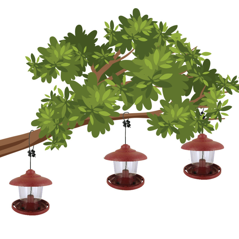 Système de suspension ajustable : fini le casse tête pour accrocher la mangeoire sur une branche.