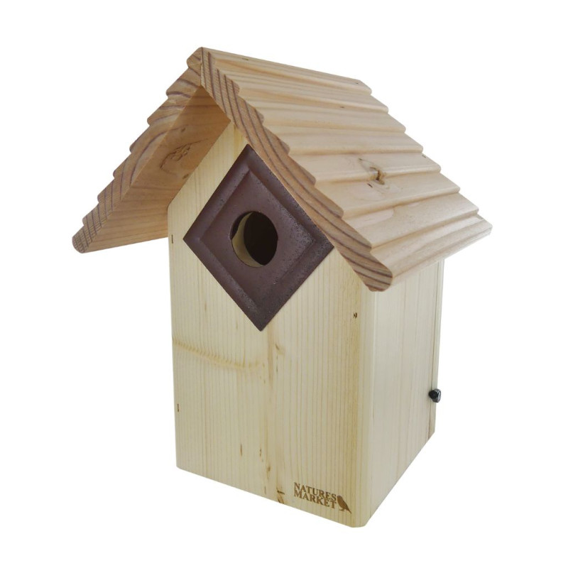 Avec une ouverture de 34 mm de diamètre, ce nichoir en épicéa et pin douglas offre un abri sûr idéal pour un jeune couple d'oiseaux cherchant un endroit pour élever leurs petits.