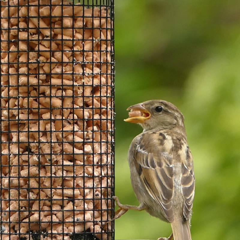 Si vous déposer les pépites sur une mangeoire plateau ou dans les paniers (Mangeoires Graines et Eau, Antique, Carrousel...)vous attirerez le rouge gorge, le verdier...et de nombreux autres passereaux... cependant, attention, les pépites s'écoulent difficilement dans les mangeoires pour graines à petites ouvertures.