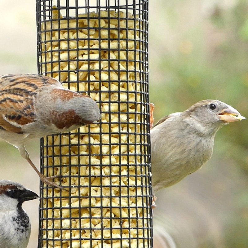 Si vous déposer les pépites sur une mangeoire plateau ou dans les paniers (Mangeoires Graines et Eau, Antique, Carrousel...)vous attirerez le rouge gorge, le verdier...et de nombreux autres passereaux... cependant, attention, les nuggets s'écoulent difficilement dans les mangeoires pour graines à petites ouvertures.