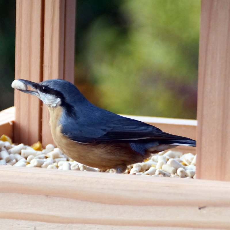 Vous y aurez la visite des nombreux acrobates : les mésanges (jusqu'à 5 variétés ! mésange bleue, charbonnières, noires, longue queue, huppée, boréale...), la sittelle, le pic épeiche...(Mangeoire Apéro),