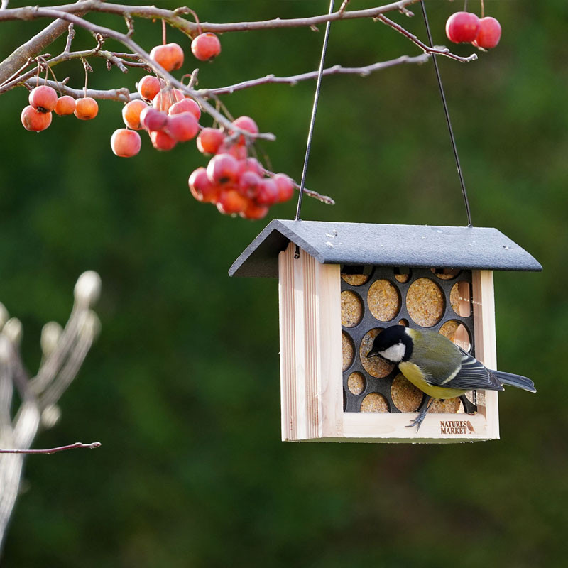 Mangeoire à remplir avec un repas de graisse végétale (pas de boeuf et pas d'huile de palme, c'est essentiel !).
